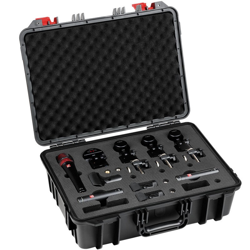 The V PACK ARENA BLACK consists of one V KICK for your bass drum, three V BEATs and V CLAMPS for your toms, one V7 X for your snare, and a pair of sE8 condensers for your overheads. All mics and accessories come securely packaged inside a robust plastic flight case, with an empty space included to accommodate your favorite hi-hat mic. This all-black edition with red windscreens will stand out on any drum kit!