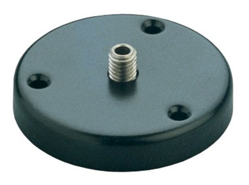 Table Flange - Black. Black flange with 3/8" hexagonal screw to connect goosenecks etc. 4 mm cable entry hole.