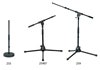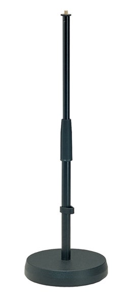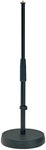 Combination floor and table stand. Heavy black cast-iron base with sound absorbing rubber insert. Height-adjustable 2-piece tubing.