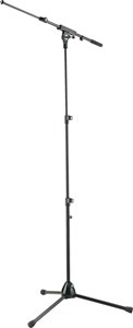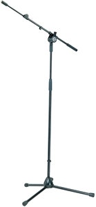 Microphone Stand - Black. Low-level stand with folding base, complete with long, 2-piece extendable boom arm.