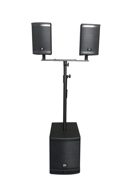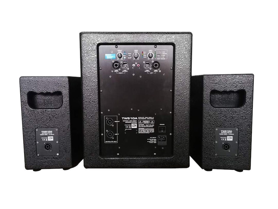 TW510A speaker system includes one active subwoofer and two satellite speakers and stands.