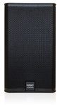 - Enclosure: Trapezoidal, plywood, black texture paint finish. Two side-mounted handles. Perforated, powder-coated steel grille with foam lining.