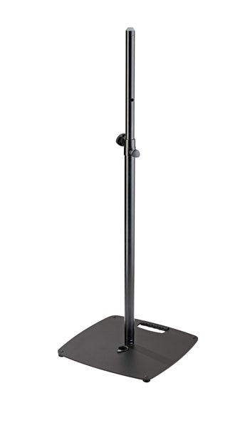 This speaker stand with a flat base plate is stable and compact and does not take up much space. The robust tube combination can be extended to 1.81 m and can support loudspeakers up to 20 kg.