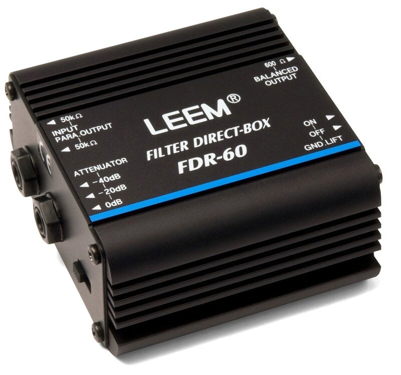 Direct Box with 1/4" input, balanced XLR outputs. Includes input attenuator and ground lift.