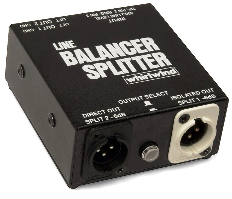 A handy tool that balances and isolates a single line level signal or lets you send a line level signal to two destinations with transformer balancing and isolation for one or both of the outputs.