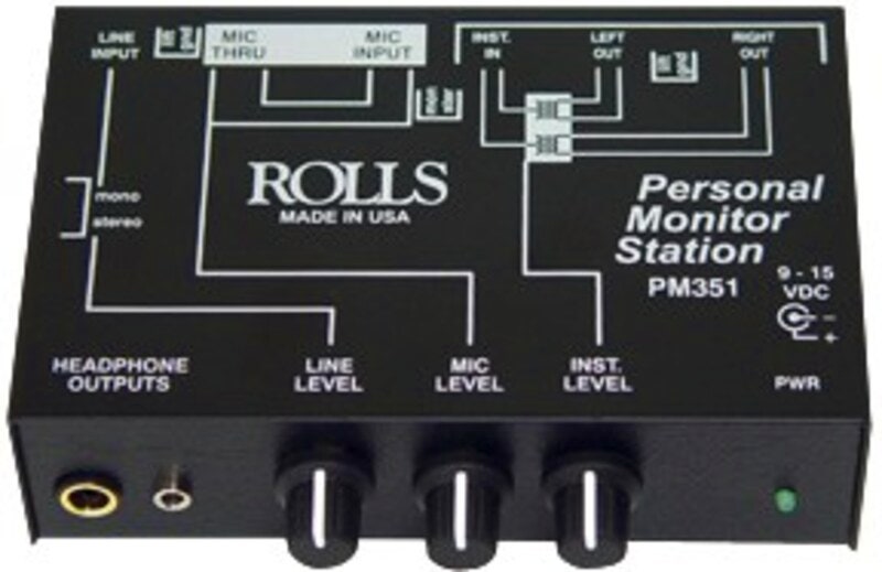 The PM351 is a personal monitoring device with a 1/4\" TRS stereo/mono Line Input,a single XLR Microphone input and hard-wired XLR pass-through, and a 1/4\" stereo/mono Instrument input with two transformer-balanced and isolated XLR Outputs. All three of these inputs are also routed via individual Level controls, to a 1/4\" and an 1/8\" (3.5mm) Phone Output. The Mic Through, and Instrument outputs have jumpered Ground Lifts for elimination of ground hum. The PM351 is ideal for live bands and church musicians, as well as studio musicians and singers. Having the ability to monitor a main mix along with the musician\'s voice and their instrument make the PM351 an effective and versatile tool.