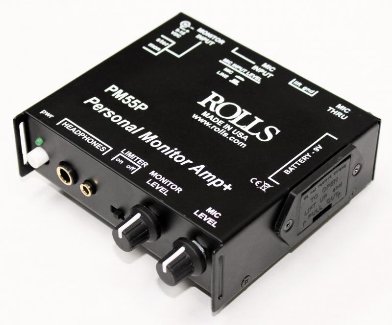 The PM55P With built in Optical Limiter is designed for performers who need to monitor their own signal, such as their vocal, with the main mix. The unit has become very popular with drummers who need to mix a click with a monitor signal. And many sound technicians use the PM55P as a quick line tester to troubleshoot audio systems. Operates on either one 9 volt battery or the included PS27s power supply. The PM55P also has an included belt clip.