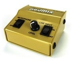 Passive mixer that combines a microphone with a stereo, line level audio source.