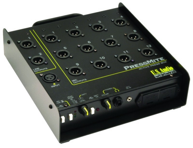 Article number 1959200Active press feed distribution box distributes 12 high-quality mic level signals and 2 line level signals with a high degree of isolation between outputs.