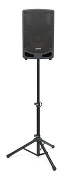 The XP312w operates for up to 12 hours continuously via its built-in rechargeable lithium ion battery. Its lightweight Class D amplifier delivers 300 watts of power to a 2-way speaker system with a 12" woofer and 1" tweeter. This is all housed in a rugged polypropylene enclosure with a steel grille that weighs just 38 pounds. And with a retractable handle and smooth rolling wheels, transporting the XP312 is as easy as it gets. Plus, a 1 3/8" speaker stand receptacle allows the XP312w to be mounted using any standard speaker stand