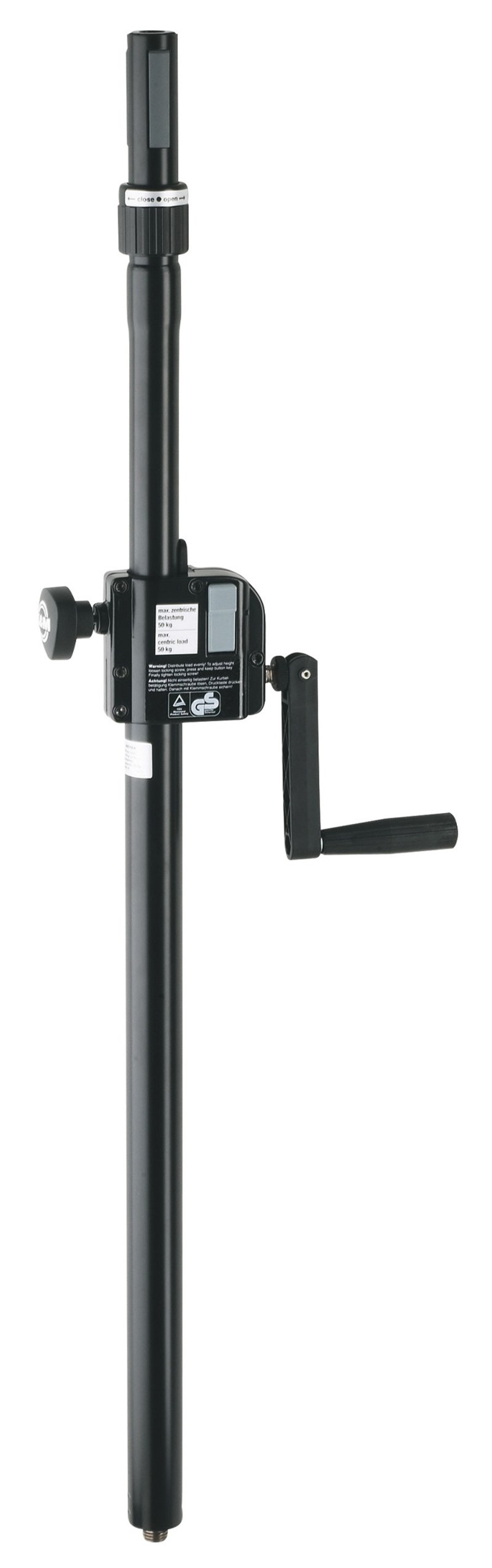 Ring Lock« system. A comfortable hand crank allows you to adjust the height of even the heaviest of speakers both