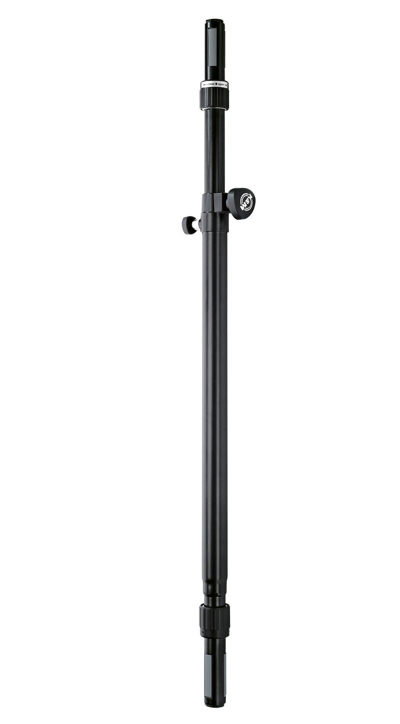 Unshakable and Stalwart! This high quality, height adjustable distance rod is a guarantee for a secure, stable and quiet connection to satellite systems. The height is adjusted by an easy-to-use spring-loaded bolt and locking screw. The unique patented expanding mandrel system provides a stable, tight and firm fit for subwoofers and satellite speakers. The movable plastic splints provide for a vibration-free connection between the rod and the speaker. Connecting the speaker is easy and is done using the handy ring lock - which is simply placed in position and screwed on.