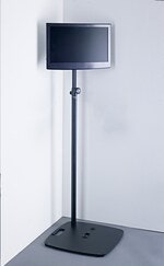 Steel tube combination for use with various base plates. With threaded bolt M20 for screwing in. Extension tube with diameter 35 mm to accommodate loudspeaker cabinets with flange socket. Height adjustable by means of a locking bolt and safety screw. The integrated threaded socket M10 allows the mounting of a crossbar or the direct attachment of spotlights.