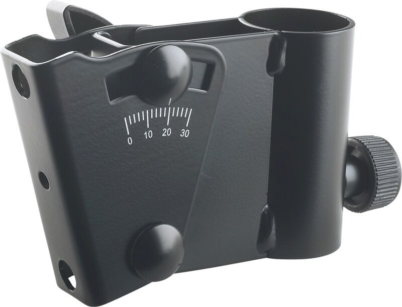 Using this stand adapter, loud speakers or sound columns can be mounted on speaker stands or wall mounts without the need for an incorporated flange. The mount is suitable for stands with a section diameter of 35 mm. The adapter can be tilted to 30° and adjusted to any height using the clamping screw. Assembly is easy as the swivel mount is first attached to the stand and then slotted into the bracket.
