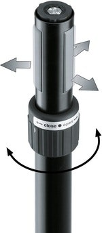 Short steel tube for connecting satellite systems. Top with unique, patented expanding mandrel for a tight and backlash-free fit of the speaker. The plastic expansion jaws ensure a low-resonance connection between speaker and tube. Easy handling by means of clamping ring. Bottom with M20 threaded bolt for screwing into mounting plate 24116.