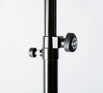 All clamps are high quality zinc die-cast. The leg construction and large fixed foot end caps enhance safety and stability. This professional stand is TÜV (German Technical Supervisory Agency) approved for a maximum central load capacity of 50 kg. Other features are the pull-out guard for the extension tube, the integral anti-shock component and comfortable height adjustment with spring-loaded bolt and locking screw. Comes with a mounting aid on the extension rod.
