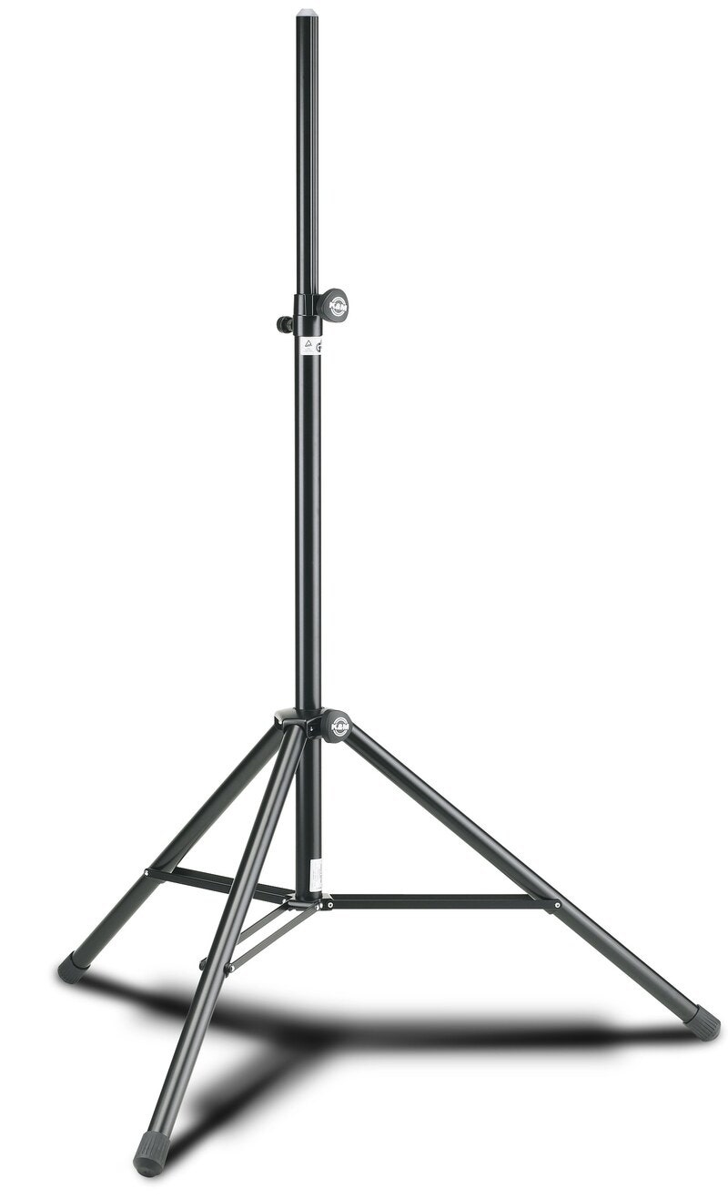 Experience serious support from this new speaker stand due to the built-in pneumatic spring. With a lifting power of 25 kg, heavy speakers are lifted up safely and ergonomically — with no stress on one's back! The world-wide acclaimed speaker stand 21460 with its impressive stability and reliability provides the stand's foundation. Additional features such as the mounting aid, pull-out guard and height adjustment with spring loaded bolt are integrated standards for K&M speaker stands.