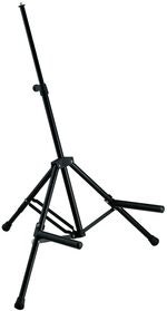 The amp stand can hold monitors, amps or other equipment to a max. weight of 35 kg without a problem. The angled front legs have significantly improved the stand's stability and strength. The low centre of gravity ensures even larger amps are securely displayed. The fine adjustment on the supporting leg allows a tilt between 15° and 28°. A microphone can be attached to the telescopic tube using a boom arm with a thread of either 3/8“ or 5/8“. Folds compactly.