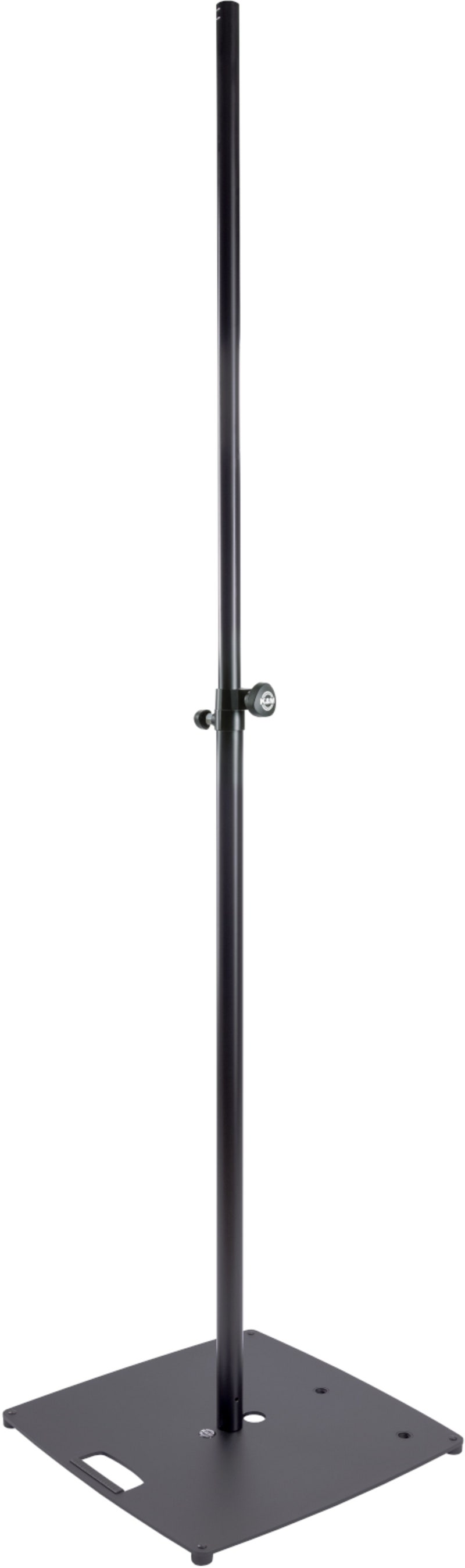 Stand for lights and loudspeaker cabinets with flat steel plate with 3 mounting options, 1420-2420 mm, black