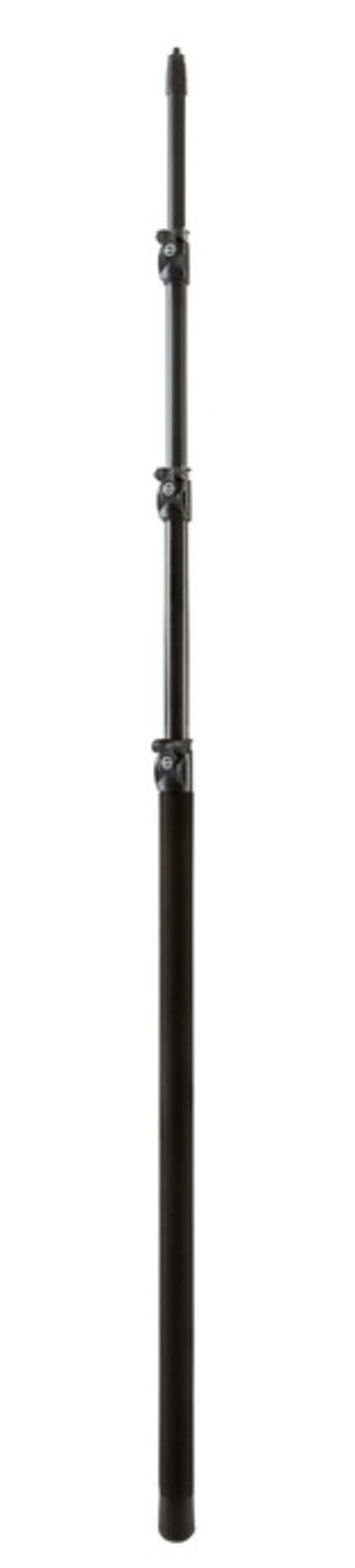 Useful microphone fishing pole made of aluminum tubing; 4-piece folding design. The clamps with the innovative locking system are easy to use and provide a high level of security. The length of the fishing pole can be adjusted variably between 1000 and 3220 mm. Cables can be placed inside the pole. An upholstered carrying case is included.