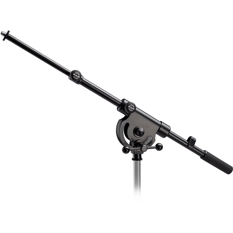 Extendable boom arm with 3/8" microphone thread connection. The stable rod combination can be positioned between 420 and 730 mm in total length. The specially designed swivel joint, with the world-renowned T-bar locking screw, offers excellent stability even with heavy studio microphones and holds its set position even after hours.