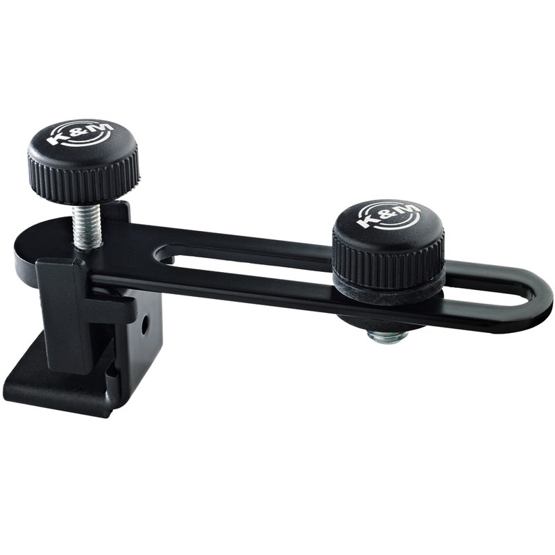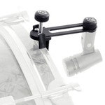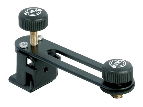 Compact holder to attach microphones to drums, esp. bass drums. The microphone can be slided up to 70 mm on the mounting rail and placed very near to the drum. Easy mounting, no parts to lose. Rubber washer and inserts absorb noise and shock, "R.I.M.S" suitable. With 3/8" thread.