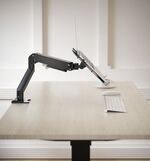 The customized solution for your workplace: this desk mount allows you to position your laptop in a space-saving and ergonomic way. The robust construction with integrated pneumatic spring can withstand loads of up to 9 kg. Thanks to the large, stable desk clamp (up to 60 mm wide), the entire mount can be quickly installed and used flexibly. Of course, the tray can be continuously tilted, rotated, and swiveled for a perfect viewing angle and a neck-friendly posture. In addition, the entire arm can be swiveled 360°. The integrated cable management also ensures a tidy and professional workplace.