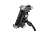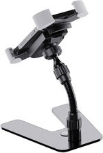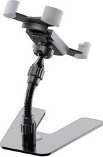 With this universal holder your smartphone is always within reach. The holder is suitable for all flat devices with a width of 55 to 85 mm. The operation is quick and easy. A quick-release button on the back with latching mechanism unlocks the rubberized clamps and the smartphone can be easily removed. Thanks to the flexible ball joint, the holder can be tilted up and down and rotated 360°. The flexible holding arm with a length of 100 mm provides additional individual positioning. An attractive metal base with non-slip rubber pads ensures excellent stability.