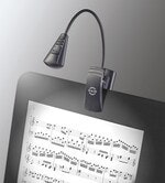 Versatile light with one extra bright and long-lasting LED rated for 100,000 hours. The flexible gooseneck provides an extremely variable adjustable light beam. The extra wide clip (up to 25 mm) attaches to music desks, table tops etc. It can also be used as a standing light. Very compact and easy-to-use. Includes 3 batteries (1.5 V AAA) with a battery life of up to 40 hours.