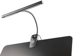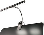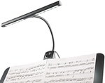 Equipped with 12 energy saving and durable LEDs, guarantees optimal music desk lighting. The re-designed light can now be operated with batteries or with a power supply. The brightness is adjusted using a variable dimmer switch. The flexible gooseneck ensures that the light is ideally positioned. A handy clip provides for easy attachment to all music desks with a thickness of 25 mm. Includes a power supply with a 3 m cord and 3 AA batteries..