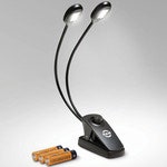 - Special features: newest LED technology; warm white light; both light heads work individually; batteries and power adapter included