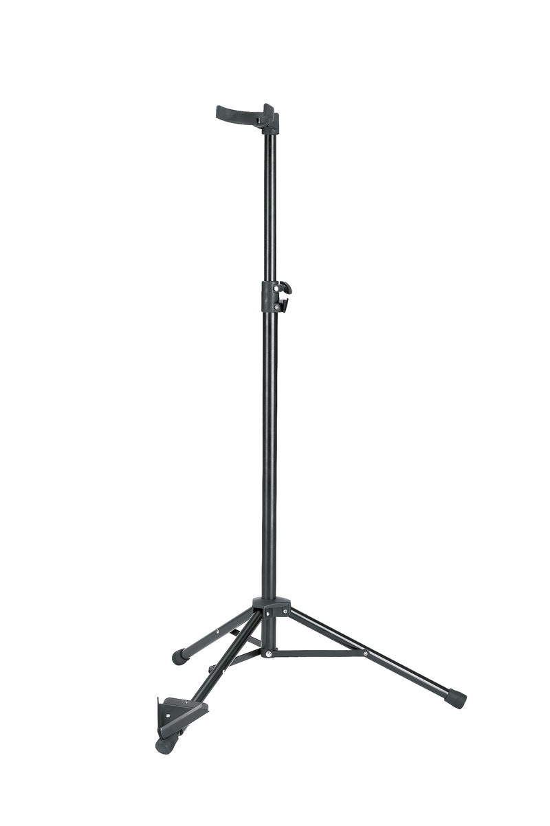 This new instrument stand was designed especially for the electric double bass. The flexible metal support bracket, upholstered with protective rubber provides optimum hold of the instrument. The newly developed V-shaped base for the endpin means it is easy to position the instrument securely in the stand. Compact when folded, it is highly suitable for mobile use. The clever design is completed by the flocked bow holder.