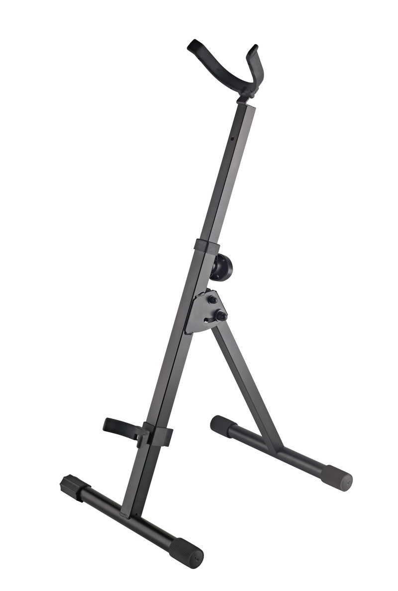 Extremely stable and robust stand for baritone saxophones. The solid metal construction holds the saxophone securely in position.