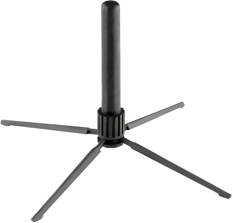 Unique, compact and extremely light flute stand with 4-leg base for Böhm flutes and/or cross flutes. Plastic peg diameter 18 mm. The zinc die-cast legs ensure a very high stability. Folded up the stand fits in almost every pocket.