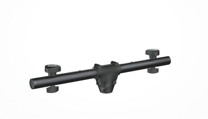 The flexible crossbar made of powder-coated steel has four holes for mounting spotlights and can be mounted either centrally above the 35 mm extension tube or on the side. While the central version can hold up to 25 kg , the side mounting is limited to a load of 10 kg. Two screw sets are included for secure and quick spotlight mounting.