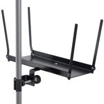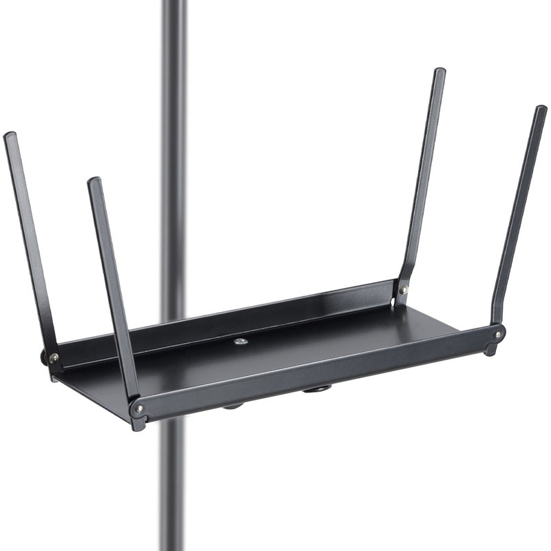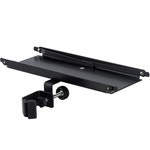 Holder for sheet music, notebooks and books, for mounting on music stands and other stands, with a tube diameter up to 30 mm. The 350-gram lightweight tray made of aluminum sheet has a surface of 90 x 240 mm and retractable struts with a height of about 130 mm. In addition, the holder scores with a durable powder coating and a special clamping to protect the finish.