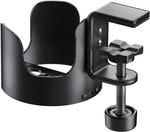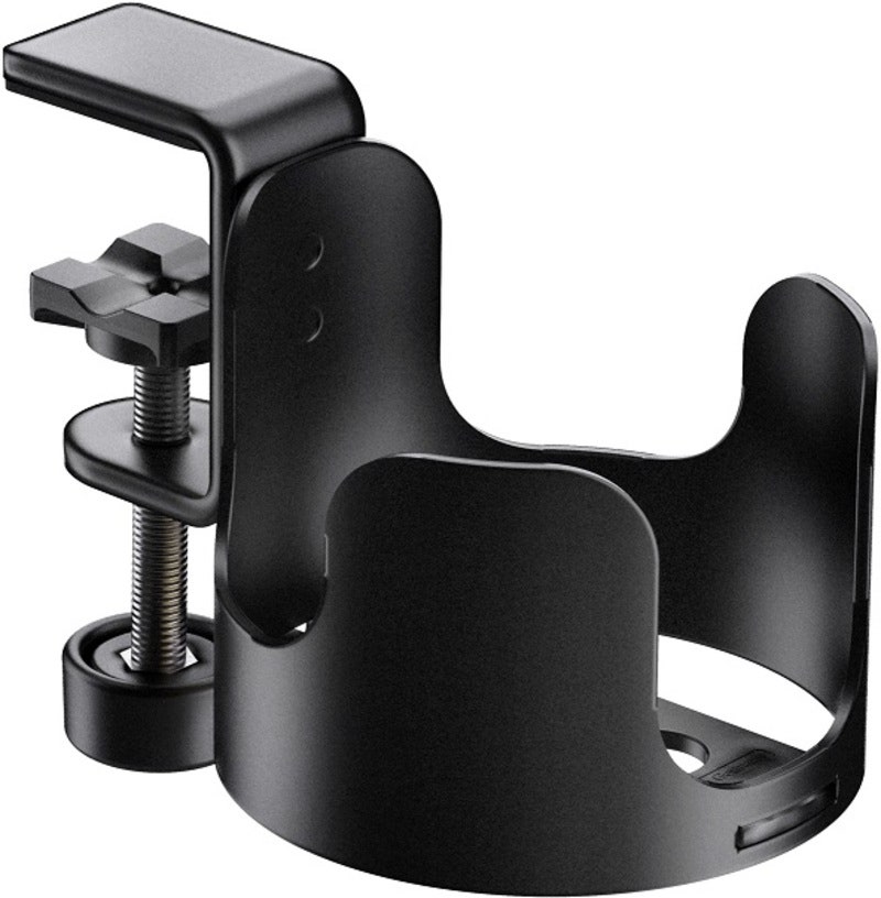 Sturdy metal holder for holding bottles, glasses and cups with a maximum diameter of 85 mm. The height of the body is 80 mm and the weight is approx. 340 grams. The surface-protecting clamp is suitable for table tops up to 40 mm thick.