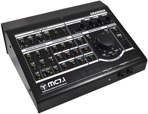 The Drawmer MC7.1 Surround Monitor Controller is a combined 7.1/5.1 and stereo monitor controller. Designed to provide all the mix checking features required for surround recordings without compromising on those used in stereo monitoring. It has the same pristine & transparent design as others from the Drawmer monitor controller pedigree, with a rugged desk top "wedge" form factor as used in the popular MC3.1.