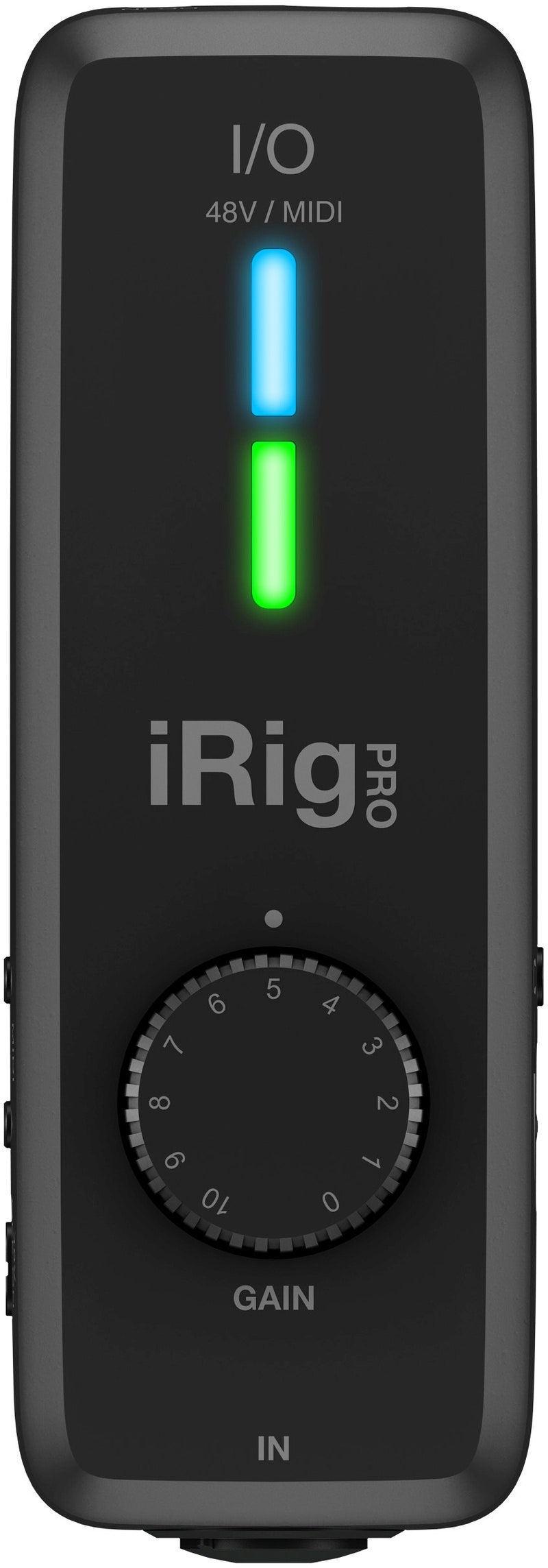 iRig Pro I/O is a pocket-sized full-featured audio and MIDI interface that gives you 24-bit/96kHz recording studio quality sound everywhere you go with a few additional essential features for mobile recording. First, iRig Pro I/O is designed to be “plug and play” easy to use with all of your gear — studio mics, vocal performance mics, guitars, basses, keyboards — whatever it is, iRig Pro I/O can handle it.